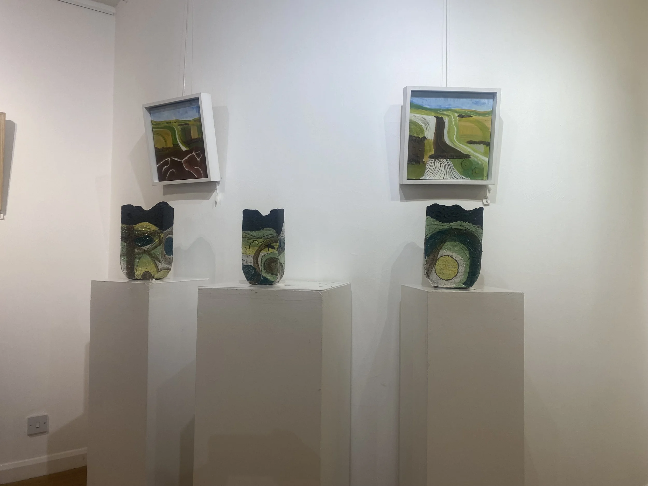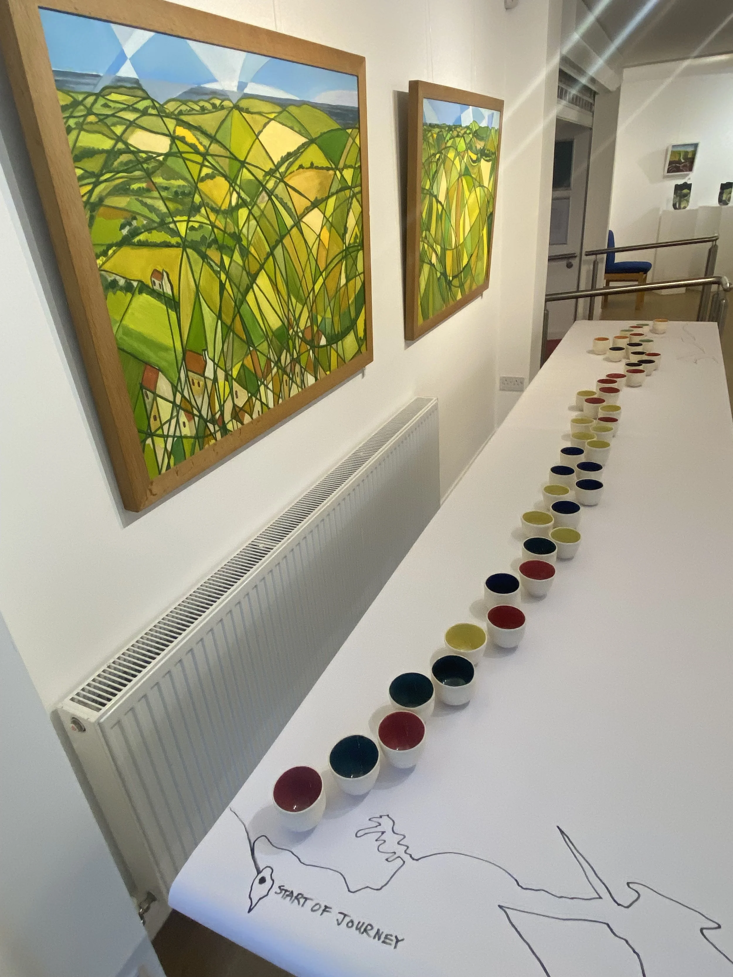 An Exhibition of ceramics and paintings, which reflect the Hike from my home on Portland to my birthplace in Yorkshire. Watercolours done each day along the way helped reflect the places we stayed, wild camping most of the way. Studio work has produced a body of work for the two gallery spaces at Shaftesbury Arts Centre in Dorset.